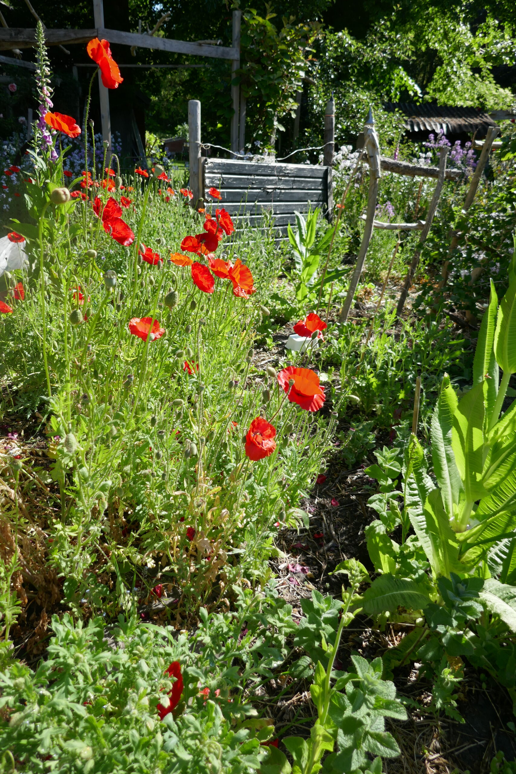 Een deel van het gazon is ruim twintig jaar in gebruik geweest als geitenwei. Daarna is het jarenlang kort gemaaid. Tegenwoordig laten we een deel groeien en zijn er verschillende wilde planten gepoot en gezaaid.